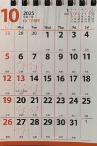 10月6日(月)・7日(火)・13日(月祝)・14日(火)・20日(月)・21日(火)・27日(月)