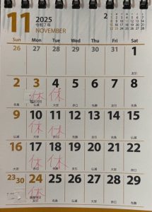 11月3日(月祝)・4日(火)・10日(月)・11日(火)・17日(月)・18日(火)・24日(月)